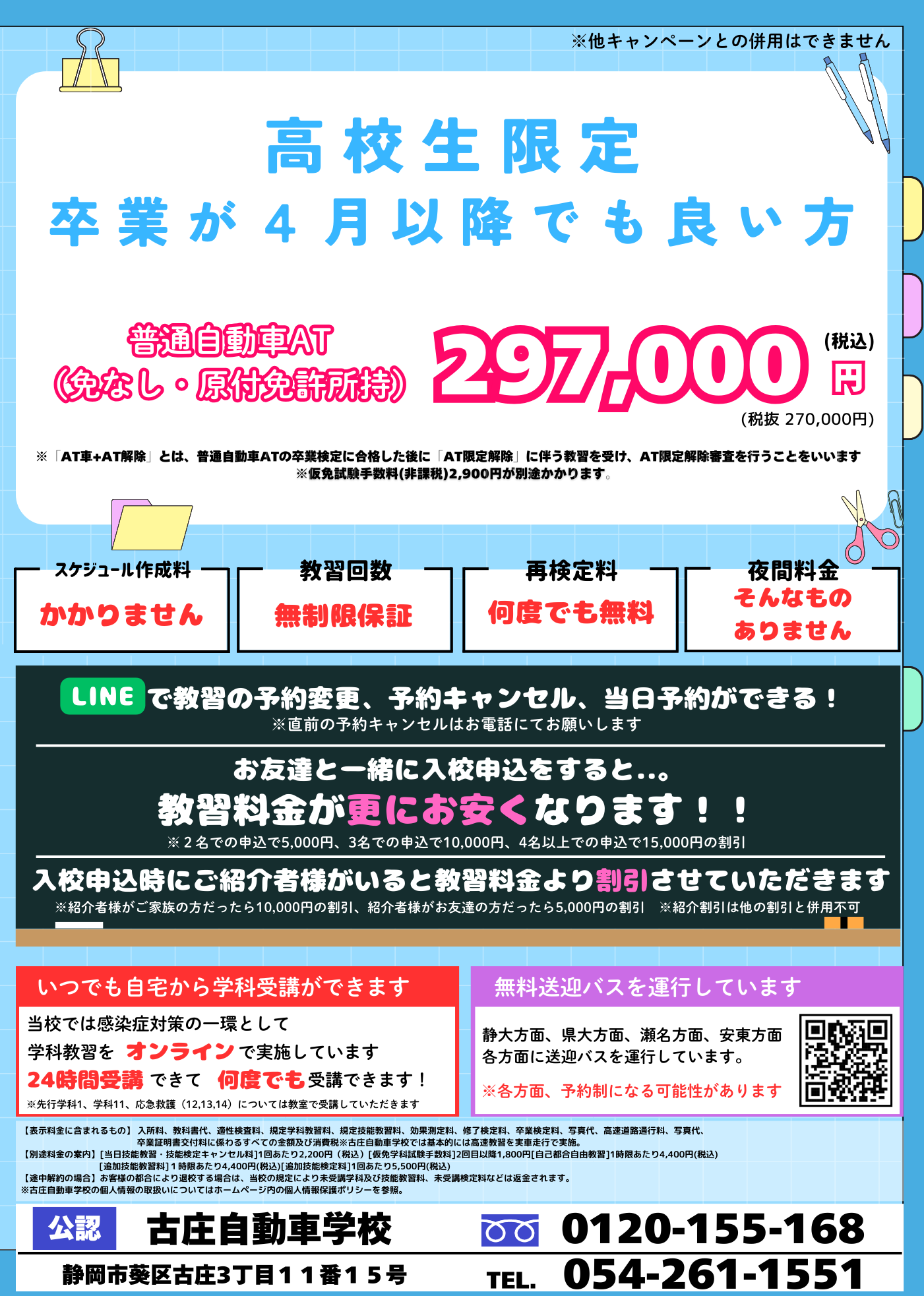 ※※高校生はお友達と一緒に入校申込をしても、割引が適用されない場合があります。※※